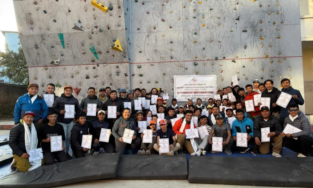 Kathmandu, December 15. The Nepal Mountaineering Instructors Association (NMIA) concluded its 51st Introductory Rock Climbing Course on Sunday, awarding certificates to 49 trainees at a closing ceremony held at the Pasang Lhamu Foundation Wall climbing Premises.